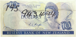 New Zealand. Queen Elizabeth II. 1977 Knight Error Ten Dollars. Serial numbers missing, with 19S 943424 manually written across the face in black marker pen, likely by De la Rue. Ex Nobles Sale 95. Robb.R.346