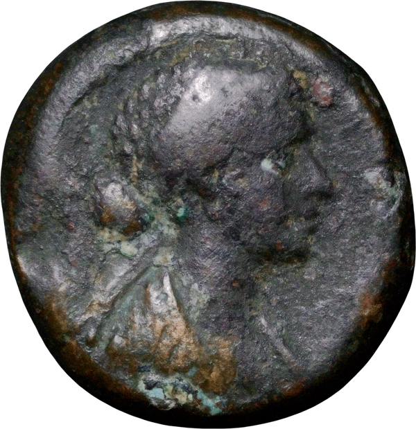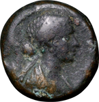 Kings of Egypt. Cleopatra VII Thea Neotera. 53-30 BC Obol or 40 Drachmai. Diademed and draped bust of Cleopatra VII to right. Rev. BAΣI[ΛIΣ]ΣHΣ KΛEOΠATΡAΣ Eagle standing left on thunderbolt with wings closed; in field to left, double cornucopiae; in field to right, M (= 40, mark of value). Alexandria mint. Ex Nobles An unusually attractive portrait of this difficult issue. Nobles Sale 79, part of. Svoronos 1872.