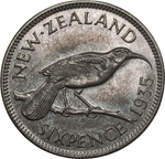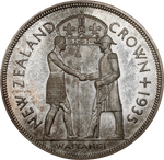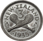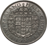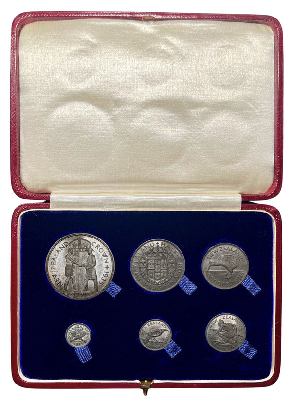 New Zealand. 1935 Proof Set. Complete silver proof set issued by the New Zealand Treasury, comprising of the Waitangi Crown and full denomination series, housed in the original leather case of issue from the Royal Mint. KM PS-3
