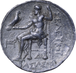 Reverse: BASILE[WS] SELEUKOU, Zeus Nikephoros seated left; monogram in left field, DI below throne.