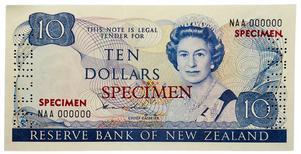 New Zealand. Chief Cashier Hardie. Bradbury Wilkinson and Company Specimen $10. P172as.