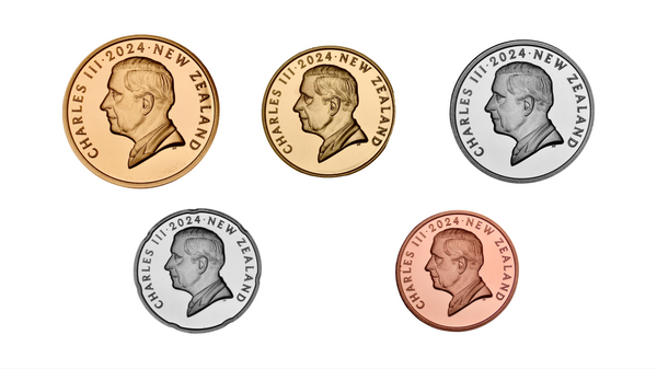 Introducing the highly anticipated first official issue of New Zealand's coinage featuring the new coinage portrait of King Charles III. It includes all five of New Zealand's circulation currency denominations, specially minted to proof standards.